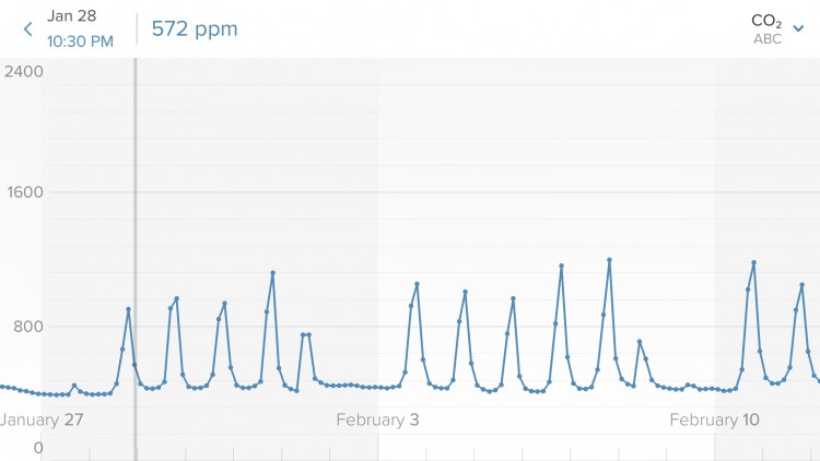 대략 최대값 1300ppm 이하를 유지하고 있습니다.
