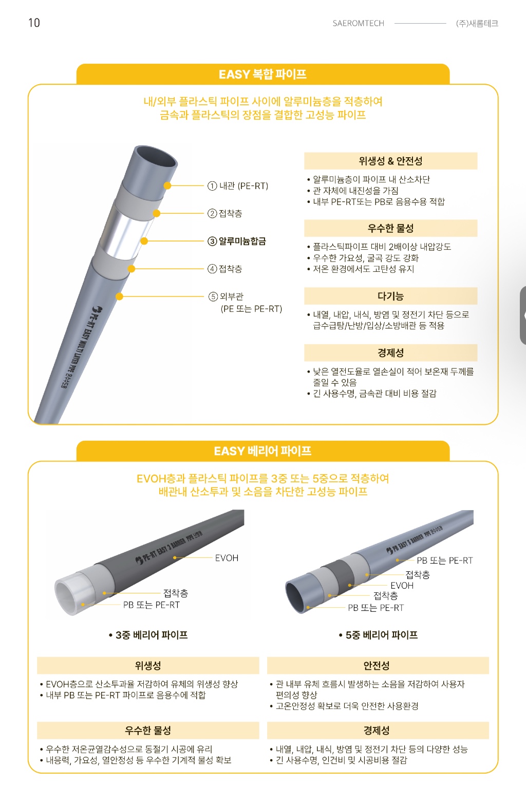 새롬테크라는 곳에서 알루미늄 복합배관과 EVOH 산소차단층이 적용된 배관제품이 나와있네요.