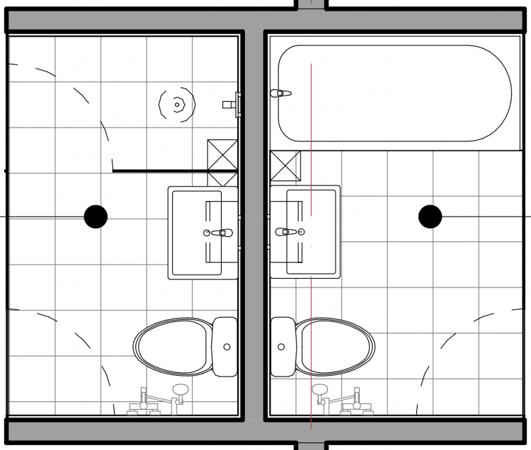 특히 가장 문제가 큰 화장실은 그림 1의 오른편 화장실인데, 이곳의 모든 설비(상하수관 전부)가 같은방향으로 약 2-30센티가 치우쳐져, 도면 해석오류 혹은 현장감독/지시 오류인것같거든요.