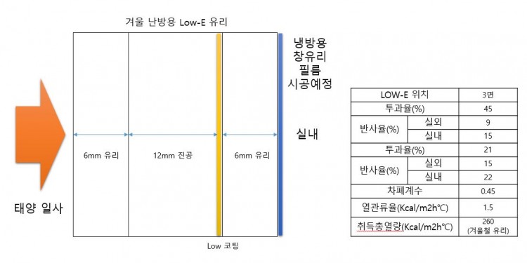 냉방용 Low-E 유리 적용부위에 냉방용 창유리 필름 적용시