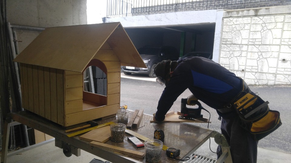 올 봄에 편백나무 합판으로 만든 강아지 집입니다. ...개집(?) 아닙니다. 쿨럭!