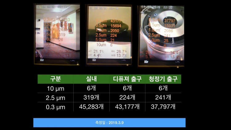 실내 오염된 수치 보단 낮습니다. 즉 효과여부는 매우 긍정적입니다.