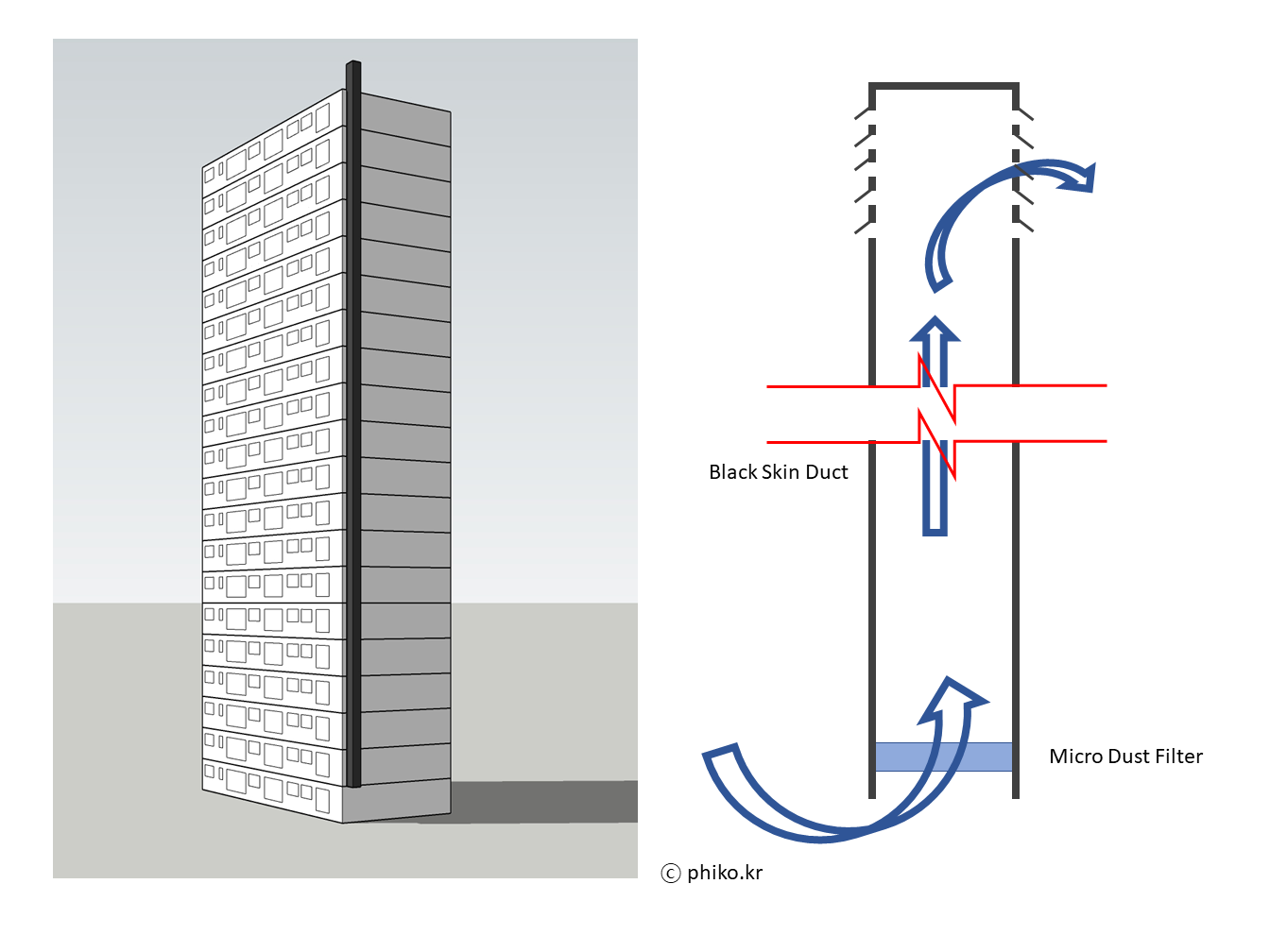 어떤 건물이건 저렇게 수직으로 덕트를 설치할 경우 연돌효과는 발생되겠죠.