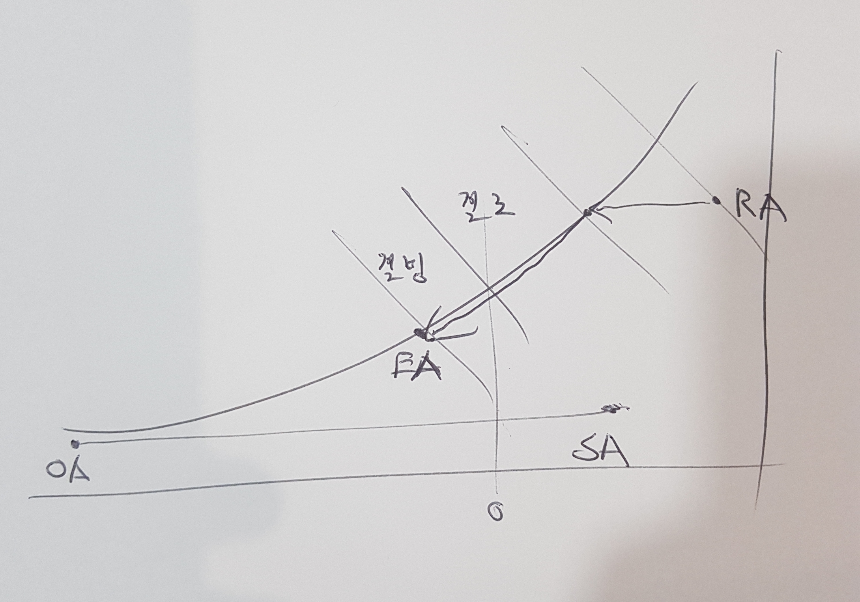 EA의 온도가 RA의 노점 밑으로 떨어졌을때 결로가 생기는 것이라고 한다면 맡는 표현일까요? 열교환기의 효율이 높아져서 고온다습한 실내공기가 외부에서 유입되는 저온건조한 공기에 열을 전달하면서