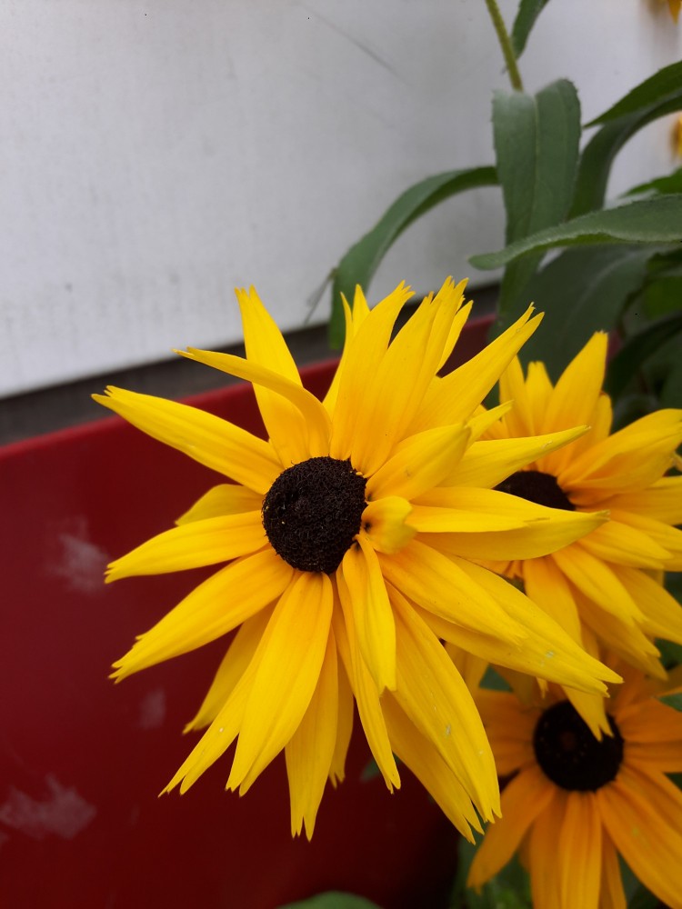 (노란 루드베키아 위, 안쓰러운 실잠자리.