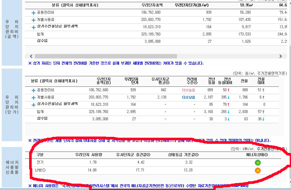 위 자료도 지역난방 지역 자료이고 해당 단지는 에너지1등급입니다.