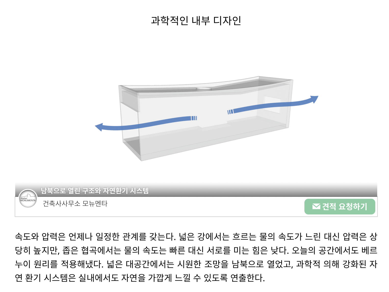 창문의 위치만 놓고도 사각형 평면을 예를 들면 접하는 두 변에 위치한 창문이 열려있을때보다 마주보는 변에 위치한 창문이 열려있을때 통풍이 잘되는거같고(체감 바람속도 등) 동일면적대비 정사각형보다 터널처럼 긴 형태가 더 잘될것같고요. 물살의 흐름과 똑같다면 개울의 폭이 좁아지는 부분에서 물살이 빨라지는것처럼 공간도 장구형으로 가운데가 오목한 공간에서 그 가운데 부분에 거주하면 자연통풍의 효과를 더 크게 느낄 수 있을지?