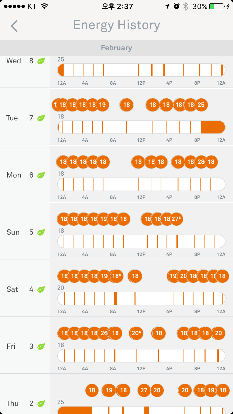 데이터는 네스트  온도조절기의 난방 히스토리 입니다.