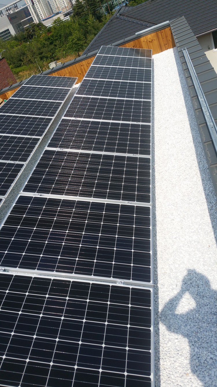 최상층에 흰색자갈을 부어 쿨루프를 시도하였습니다