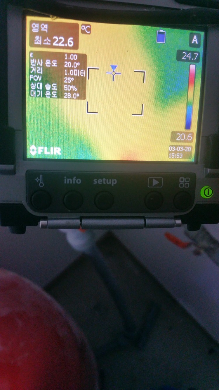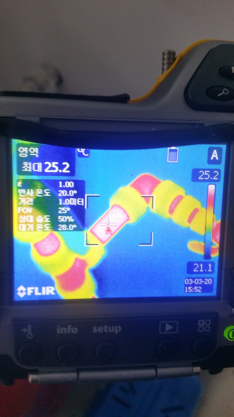 25.2도는 전체 슬라브를 통과 후 퇴수되는 라인의 표면온도입니다. 아직 공조기를 틀지 않은 상태이지만 최상층 (2층 실내온도가 25.5도) 1층 24도 지하 22도를 유지하고 있습니다.