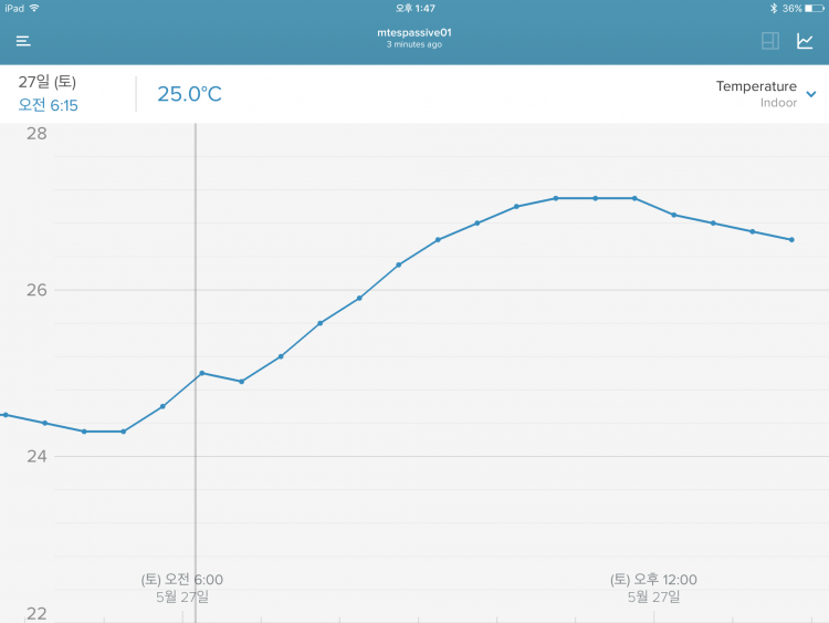 서두가 길었습니다. 계기가 된 타라주택의 온도 그래프입니다. 24도에서 시작해 27도에서 어느정도의 열평형을 상태입니다. 어떤 실험이나 변수와 상수를 분리해서 생각해야 추정이 맞는지 또는 공학적인 추론의 합리성을 얘기할수 있지만 오늘 저는 이런 부분은 제외시켜 생각했습니다.