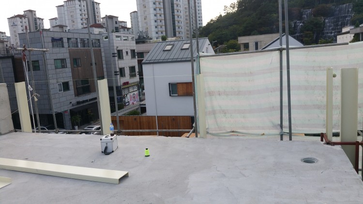 최상층 방수층을 벽체에 GFRP를 고정한 후 내부에 CRC보드를 시공하여 슬라브와 이어서 방수처리한 후 XPS 105mm 3겹 시공후 자착식 방수시트로 2차 방수 후 무근콘크리트를 치려고 합니다 생각대로 될지는 모르겠습니다. 2중 배수는 발코니용 배수구를 이용하였습니다 물이 고여있는 부분의 결로가 우려되어 하부에 우레탄폼으로 단열하고 내부에 이중 트랩을 사용하여 대기의 흐름을 최소화하였습니다