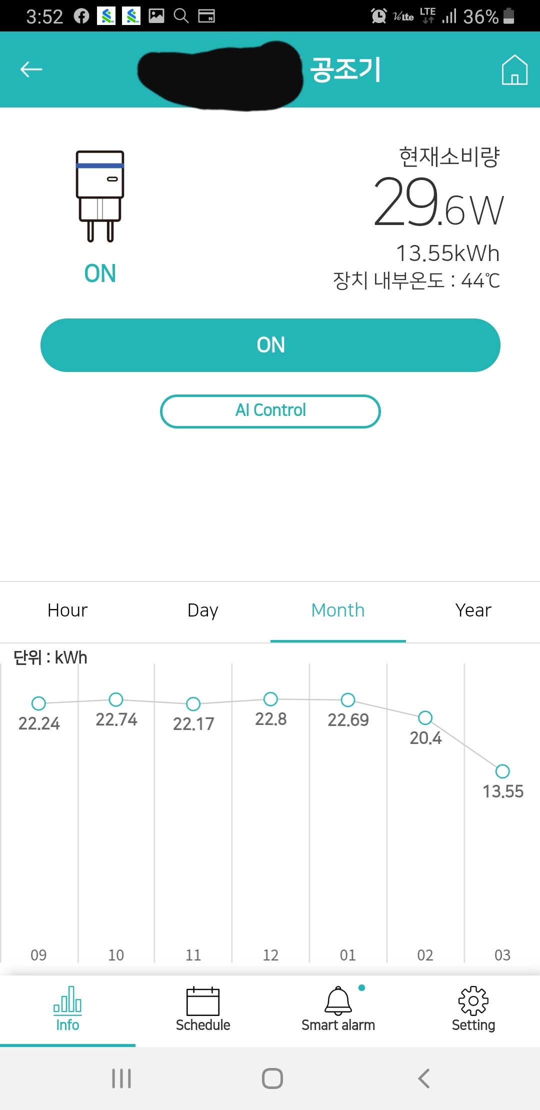 스마트플러그 앱에 찍힌 작동 시간과 시간대별 외기 온도를 비교해본 결과이니 정확한 건 아니지만 여러 날 같은 온도에서 작동이 시작된 걸 확인했습니다.