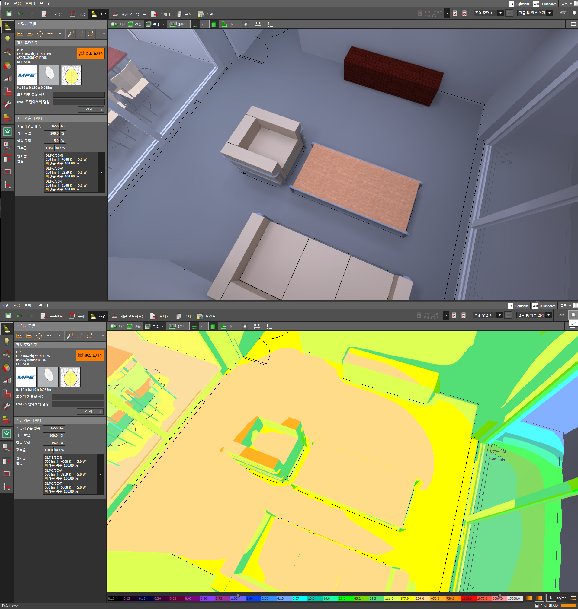 조명을 배치할때 조명기구를 특정하여 배치해보고 예상 조도를 미리 볼 수 있어서 좋은것 같습니다.