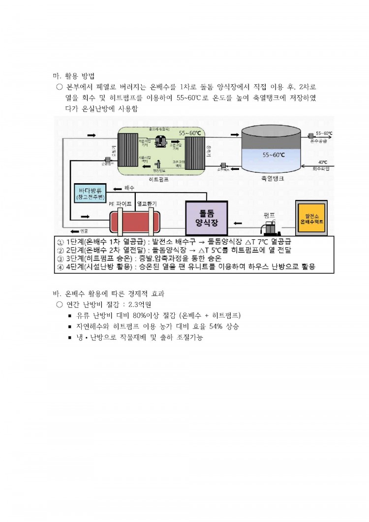 지속적으로 발전소의 저온 배수를 공급받아 냉각수로