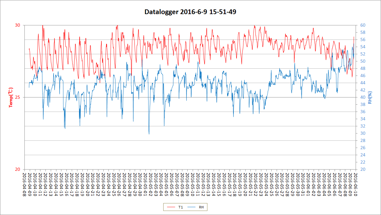 그동안 이틀동안 80-90 % 높은 습도를 기록했지만 아무튼 현재의 습도는 글쎄요 거의 약간의 냉방만에 의지했다고 볼수 밖엔 없습니다. 왜냐면 아직 제습 모듈의 가동을 하진 않았습니다. 장마철 접어들어 며칠 본 후