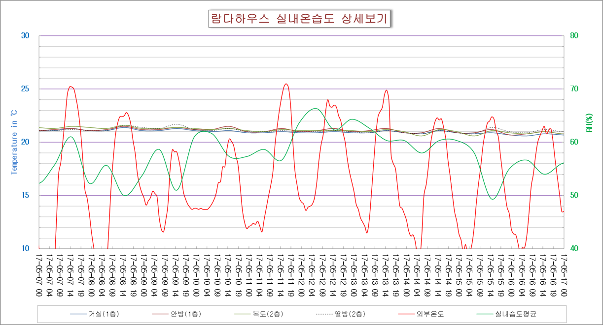 나중에 건축물 자료는 시공하신 이에코에서 올리실겁니다만 시작된 모니터링의 일주일 데이터입니다.