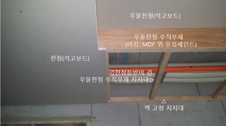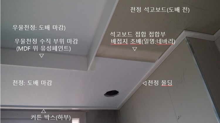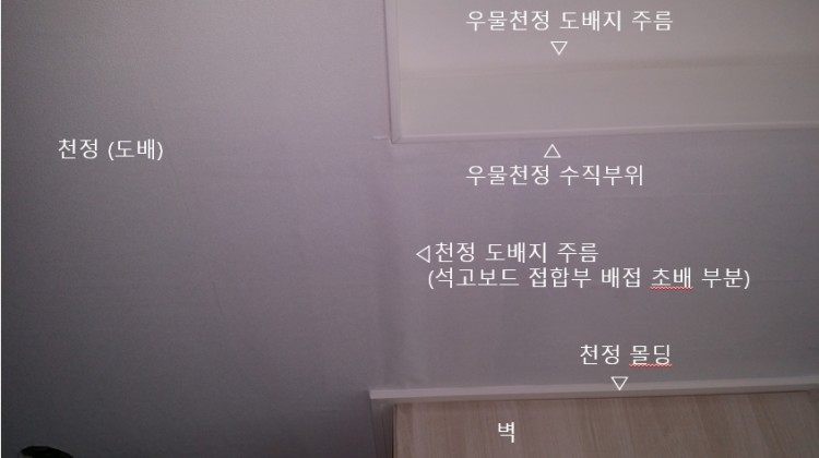 사진 쵤영의 주된 목적은 우물천정 등박스 주변에서 도배지가 울거나 찢어지는 하자에 대한 원인파악이었는데, 그중 몇 개를 올려드리오니 참고하시기 바랍니다.