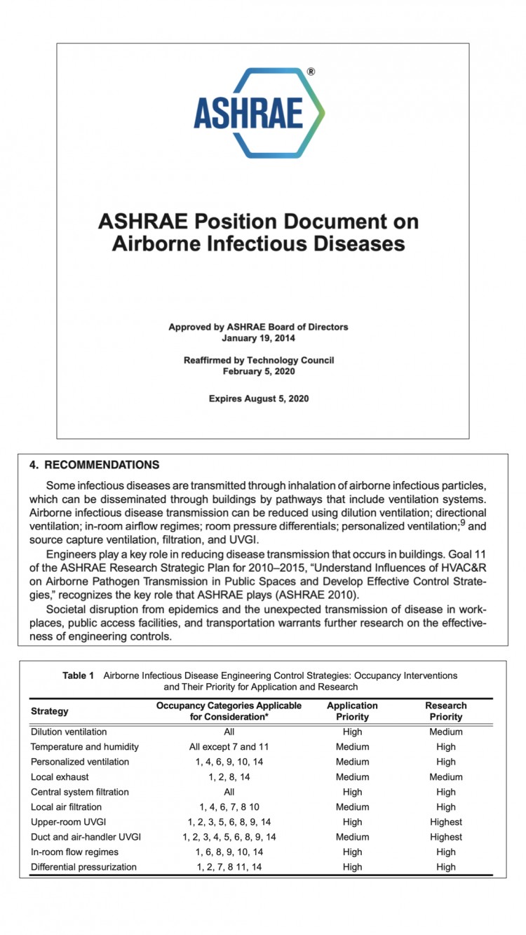 미국 공조 협회에서 발표한 감염병 관련한 글입니다.