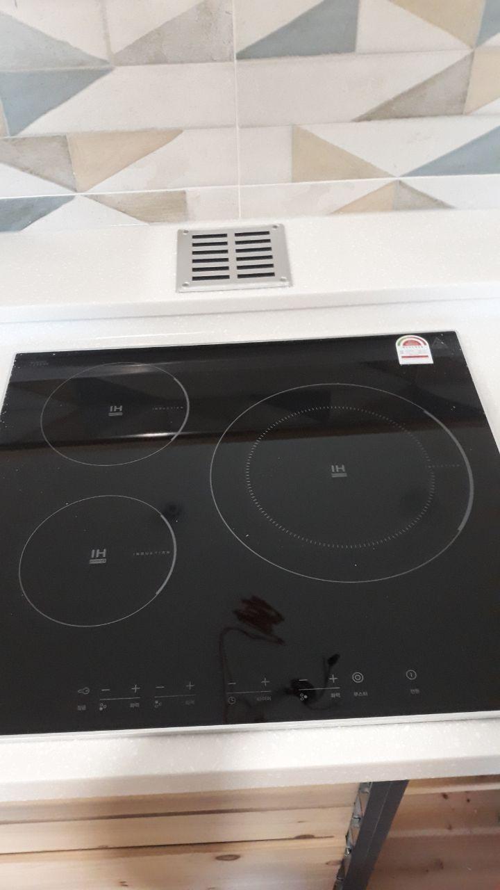 주방후드는 풍량이 작은 2단짜리 제품으로 최대 풍량 200cmh입니다. (3단 제품은 최대 500cmh가 넘습니다.)