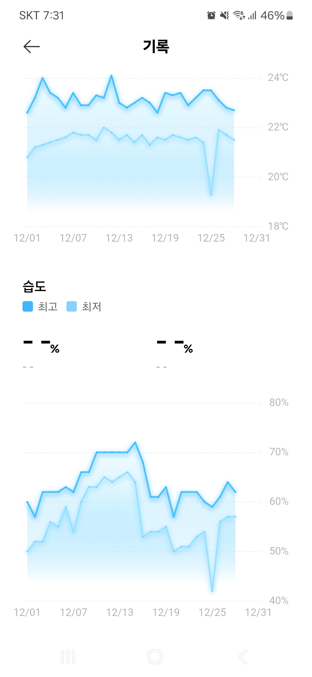 그리고 온도가 낮아서 습도가 높아진 것입니다. 온도를 더 올려 보시어요.