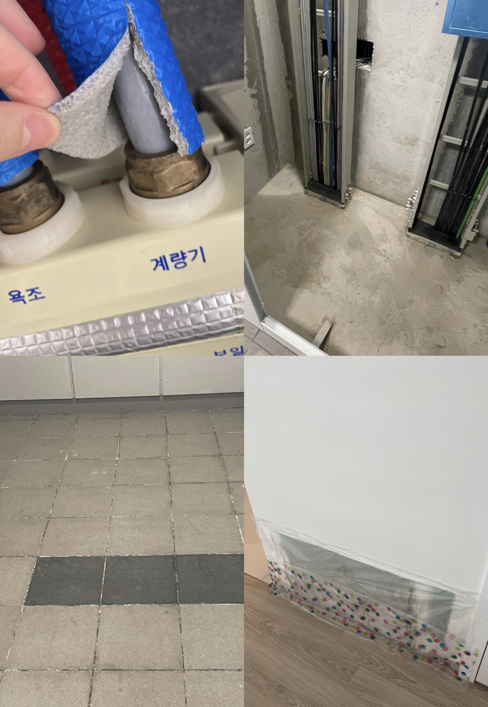 PD 바닥에 찰랑찰랑 고여있는 물과 PD공간과 붙어있는 거실화장실 욕조에서 온수 사용시 PD 내부에 있는 배관을 타고 결로가 생기는 것을 확인했습니다...하