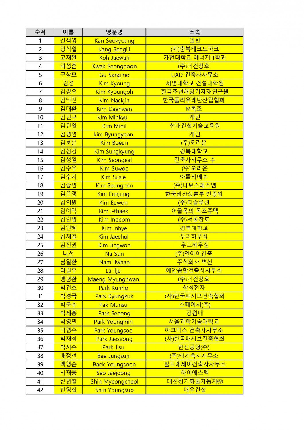 2018 제 1회 제로에너지 Skill-Up(개념교육) 교육생 확정명단안녕하십니까? 한국패시브건축협회 박재성입니다.