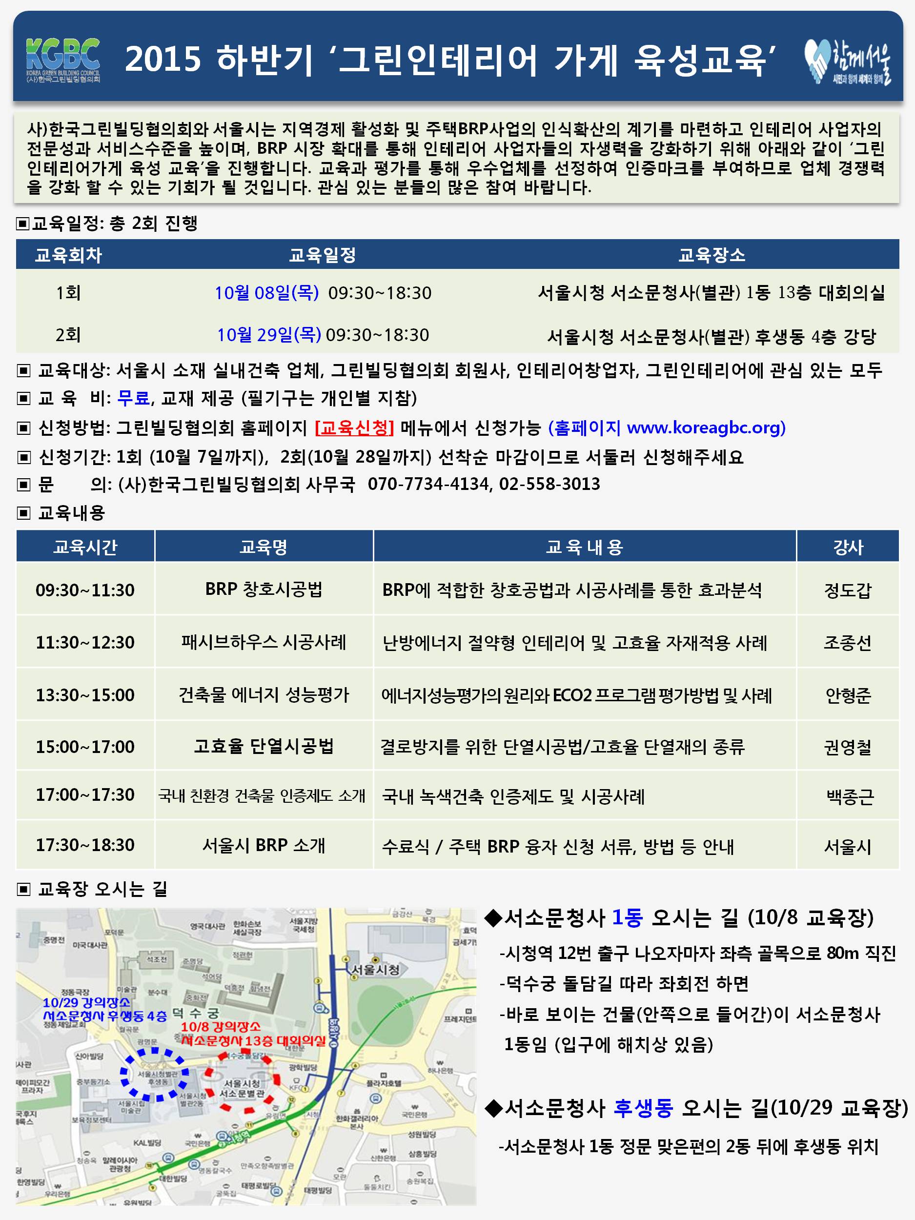 2015 하반기 그린인테리어 가게 육성 교육 공지
