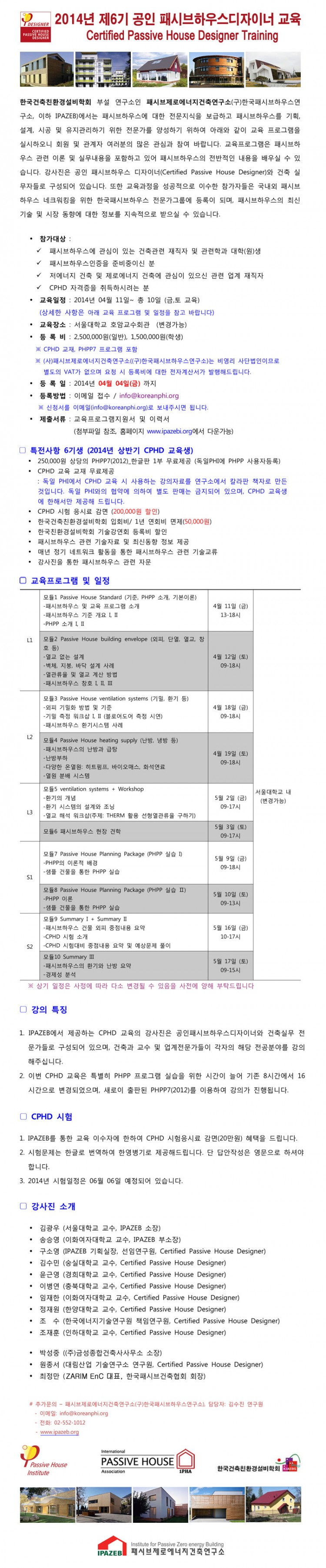 [IPAZEB] 2014년 상반기 패시브하우스디자이너 교육생 모집 안내 _ 6기