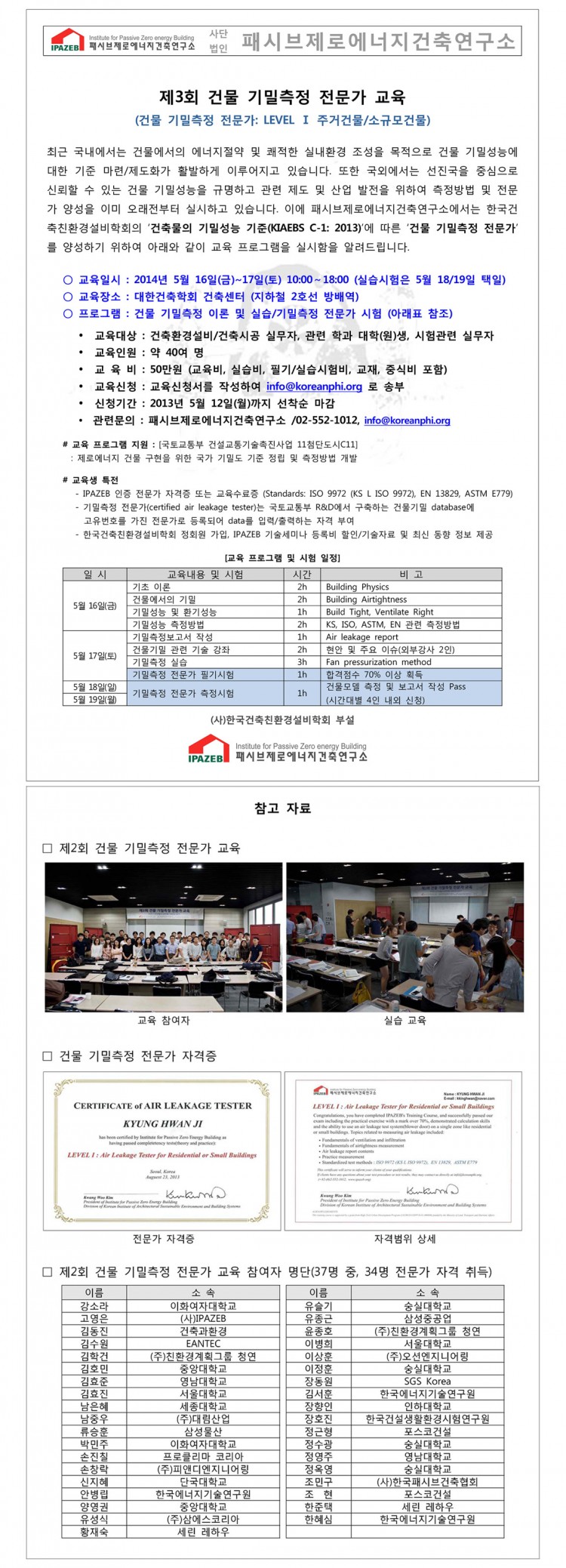 [IPAZEB] 제3회 건물 기밀측정 전문가 교육_ Level 1 (주거건물/소규모건물)