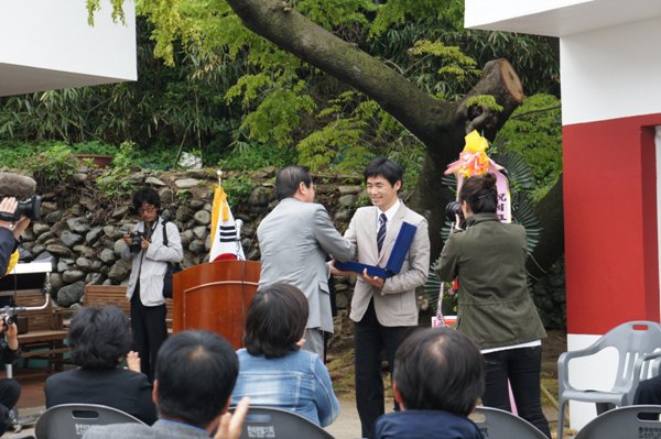 * 김동진 통영시장으로 부터 삼간일목건축사사무소 대표인 권현효소장께 감사패 전달