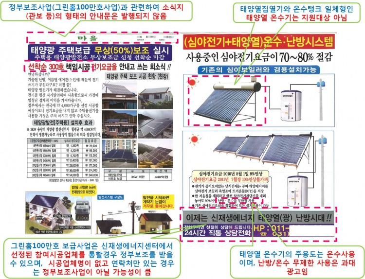 에너지관리공단에서 배포한 신재생에너지 과대광고 사례입니다.
